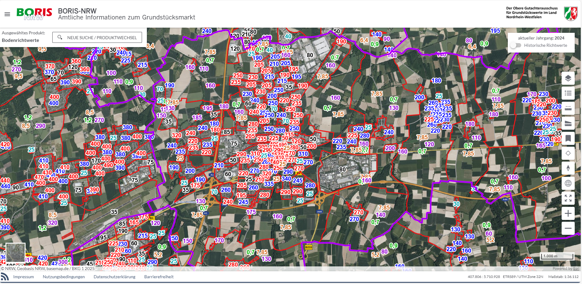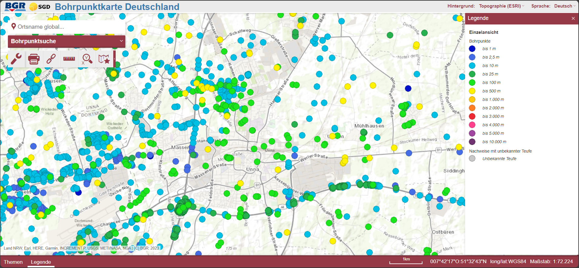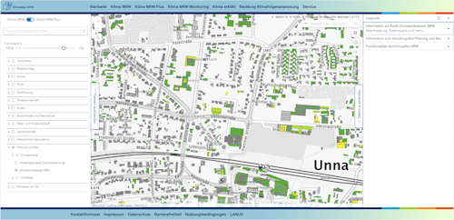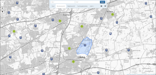 Unser neuer GeoService bietet Ihnen Zugriff auf aktuelle und historische Luftbilder, für den Kreis Unna aufbereitete Klimadaten sowie spezifische Karten wie beispielsweise zu "Kühlen Orten" an heißen Sommertagen oder solche mit Überflutungsgefahr bei Starkregen. Erkunden Sie das Netz an Radstationen und die im Kreis Unna ins Leben gerufenen „Ladepäuschen“ für E-Bikes, finden Sie Spielplätze, Bäder, Museen und Naturschutzgebiete in Ihrer Nähe. Der GeoService ist darüber hinaus ausgestattet mit praktischen Werkzeugen wie die Messung von Strecken und Routen, Koordinatenabfragen oder Erreichbarkeits-Analysen. Zeichnen Sie eigene Karten, importieren Sie externe Daten oder nutzen Sie WMS-Dienste.
